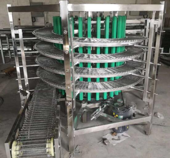 螺旋冷卻塔是一種常用的連續(xù)性輸送機(jī)械,它是利用工作構(gòu)件即螺旋體的旋轉(zhuǎn)運(yùn)動(dòng)使物料向前運(yùn)送,是現(xiàn)代化生產(chǎn)和運(yùn)輸不可缺少的重要機(jī)械設(shè)備之一!螺旋冷卻塔的優(yōu)點(diǎn):占地面積小,結(jié)構(gòu)簡(jiǎn)單、合理。 動(dòng)力消耗小,料槽磨損小 維修方便 冷卻效率高 ,傳送暢順、雜音少、低能耗、保養(yǎng)簡(jiǎn)單、快速、安全。螺旋冷卻塔應(yīng)用范圍:適用于冷卻漢堡,法式小面包,毛毛蟲(chóng),面包等產(chǎn)量較大,冷卻時(shí)間較長(zhǎng)的品種,采用不銹鋼螺旋式冷卻輸送帶,PLC智能控制。在功能不變,結(jié)構(gòu)的變化帶來(lái)成本的變化,最終帶來(lái)了利潤(rùn)的變化,使中小型食品廠買的起,用的起。螺旋冷卻塔選用不銹鋼螺旋網(wǎng)帶載體,網(wǎng)帶寬度300-900mm,層間距及層數(shù)依產(chǎn)量定制,冷卻時(shí)間20-120分鐘.冷卻產(chǎn)量大,可直接冷卻漢堡,吐司,甜面包,也可帶盤冷卻月餅,奶香包等.定制靈活,依據(jù)場(chǎng)地和產(chǎn)能設(shè)計(jì)直徑和網(wǎng)帶.單塔為上進(jìn)下出或下進(jìn)上出.雙塔為下進(jìn)下出.我廠可根據(jù)用戶的產(chǎn)量身訂做,打造經(jīng)濟(jì)實(shí)惠的非標(biāo)螺旋冷卻塔,可大大提高生產(chǎn)效率。