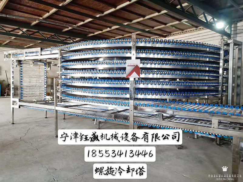 螺旋冷卻塔是一種常用的連續(xù)性輸送機械,它是利用工作構(gòu)件即螺旋體的旋轉(zhuǎn)運動使物料向前運送,是現(xiàn)代化生產(chǎn)和運輸不可缺少的重要機械設備之一!螺旋冷卻塔的優(yōu)點:占地面積小,結(jié)構(gòu)簡單、合理。 動力消耗小,料槽磨損小 維修方便 冷卻效率高 ,傳送暢順、雜音少、低能耗、保養(yǎng)簡單、快速、安全。螺旋冷卻塔應用范圍:適用于冷卻漢堡,法式小面包,毛毛蟲,面包等產(chǎn)量較大,冷卻時間較長的品種,采用不銹鋼螺旋式冷卻輸送帶,PLC智能控制。在功能不變,結(jié)構(gòu)的變化帶來成本的變化,最終帶來了利潤的變化,使中小型食品廠買的起,用的起。螺旋冷卻塔選用不銹鋼螺旋網(wǎng)帶載體,網(wǎng)帶寬度300-900mm,層間距及層數(shù)依產(chǎn)量定制,冷卻時間20-120分鐘.冷卻產(chǎn)量大,可直接冷卻漢堡,吐司,甜面包,也可帶盤冷卻月餅,奶香包等.定制靈活,依據(jù)場地和產(chǎn)能設計直徑和網(wǎng)帶.單塔為上進下出或下進上出.雙塔為下進下出.我廠可根據(jù)用戶的產(chǎn)量身訂做,打造經(jīng)濟實惠的非標螺旋冷卻塔,可大大提高生產(chǎn)效率。