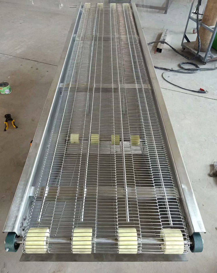 網(wǎng)帶輸送機(jī)是在一定的線路上連續(xù)輸送物料的物料搬運(yùn)機(jī)械,又稱連續(xù)輸送機(jī),可分為網(wǎng)帶式和網(wǎng)鏈?zhǔn)?。輸送機(jī)可進(jìn)行水平、傾斜和垂直輸送,也可組成空間輸送線路,輸送線路一般是固定的。輸送機(jī)輸送能力大,運(yùn)距長(zhǎng),還可在輸送過程中同時(shí)完成若干工藝操作.網(wǎng)帶輸送機(jī)制作采用的材質(zhì)有,碳鋼,201不銹鋼,304不銹鋼。